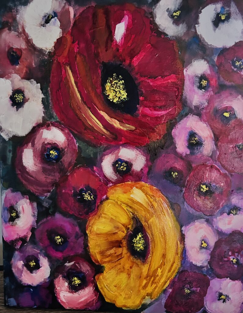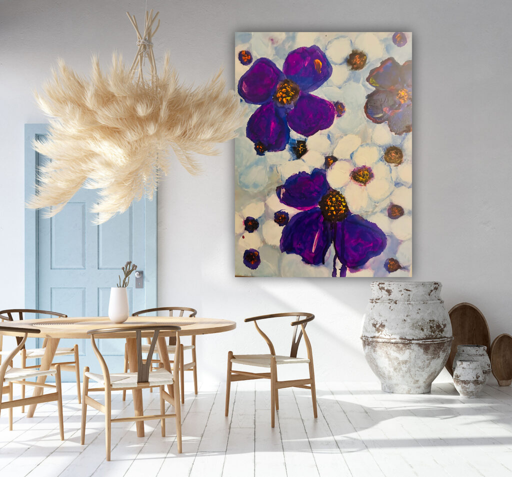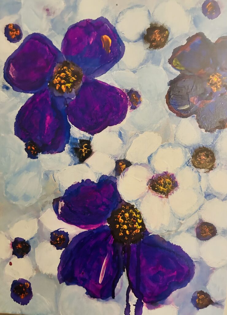 Where dreams bloom: Is a floral piece that blends the mystery of twilight purples with the serenity of soft white blossoms, inviting you to pause, breathe, and lose yourself in its soulful beauty. Where dreams bloom is an original painting on 12*16 canvas, abstract acrylic and mixed media.